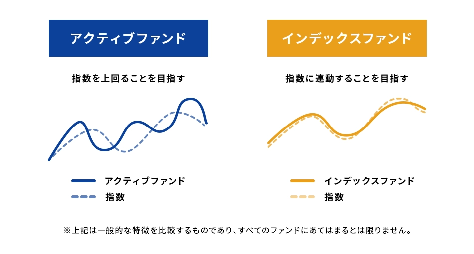 投資信託は運用手法によって、日経平均株価など特定の指数に連動することを目指す「インデックスファンド」と、それを上回ることを積極的に目指す「アクティブファンド」に大別されます。