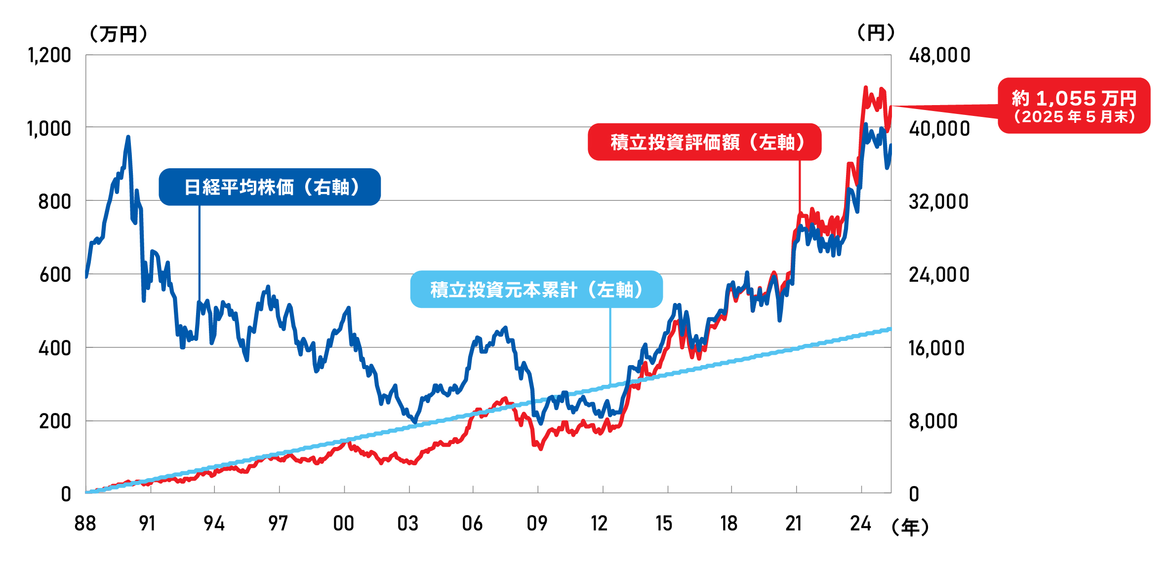 (日経平均株価を毎月1万円。累計金額448万円[2025年5月末現在])