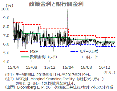■パテルRBI総裁は記者会見で、2015年初以降、政策金利を1.75%引き下げたが貸出金利の低下は0.85~0.90%に留まっていると指摘し、現行の政策金利水準でも貸出金利の引下げ余地はあるとしました。今後、不良債権処理推進などで更なる貸出金利の引下げが見込まれます。また、RBIは、この3月に預金の引出制限を撤廃する方針を示しました。高額紙幣廃止による混乱は収まると見ているようです。手控えられた消費の回復と更なる貸出金利低下により経済は加速し、株式市場にはプラスと考えられます。また、高金利と経済成長の加速は通貨安定につながり、債券市場も引き続き注目されます。