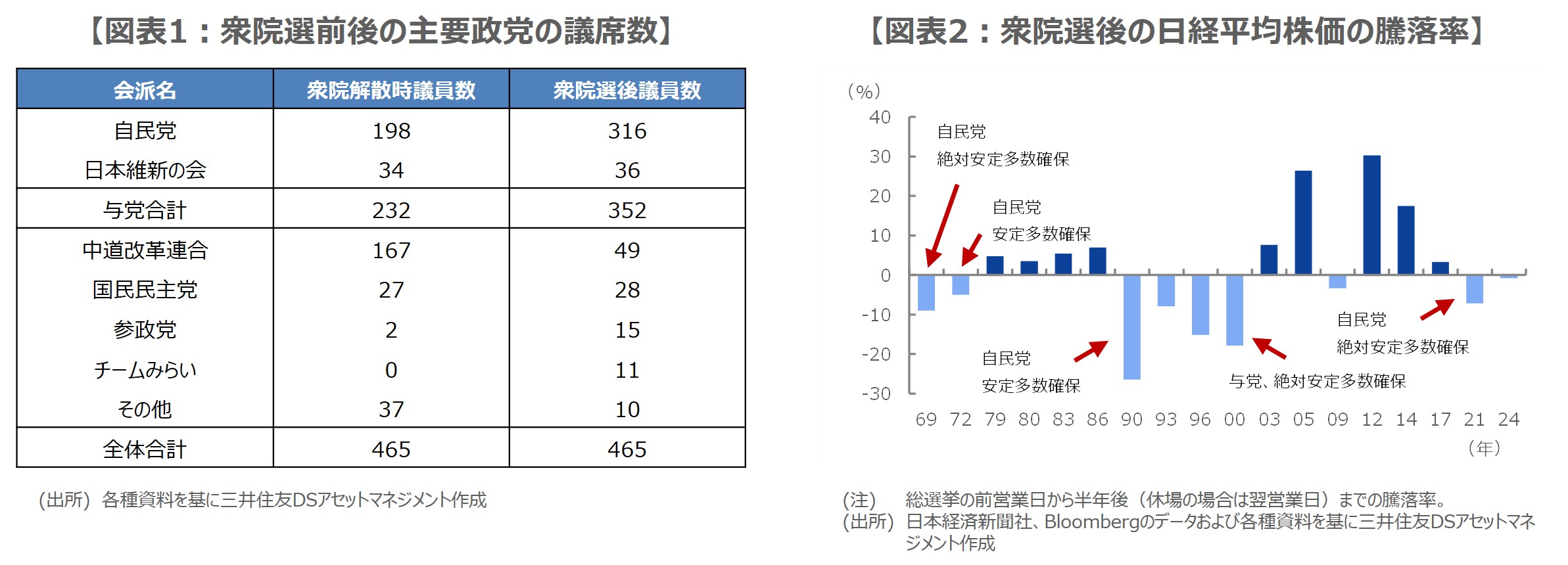 2月8日に投開票が行われた衆議院議員選挙では、自民党が単独で定数465議席の3分の2にあたる310議席を超え316議席を確保し、歴史的大勝を収めました(図表1)。日本維新の会と合わせた与党では352議席を獲得して圧勝となり、与党は憲法改正の国会発議や、参議院が否決した法案の衆議院での再可決が可能となります。高市早苗首相は、国民の信任が得られたとして「責任ある積極財政」などの政策を推進していく見通しです。