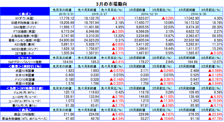 先月のマーケットの振り返り(2015年3月)【マンスリー】