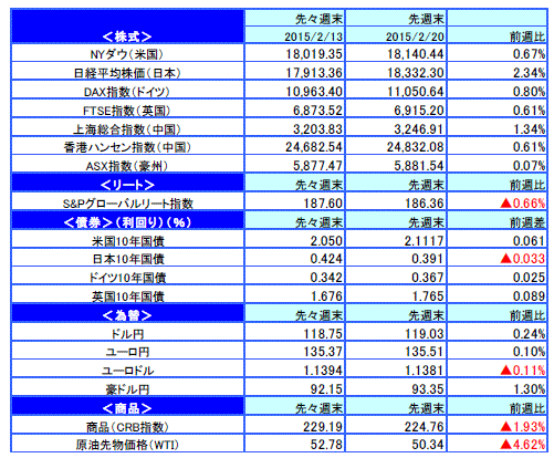 先週のマーケットの振り返り(2015/2/16-2/20)【ウィークリー】