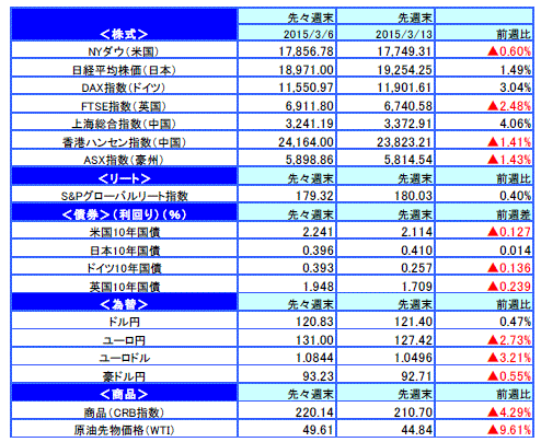 先週のマーケットの振り返り(2015/3/9-3/13)【ウィークリー】