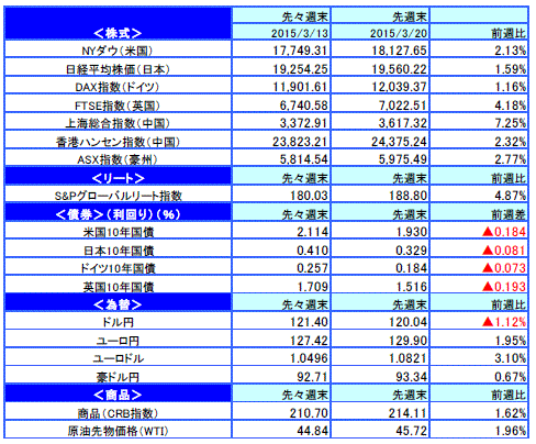 先週のマーケットの振り返り(2015/3/16-3/20)【ウィークリー】