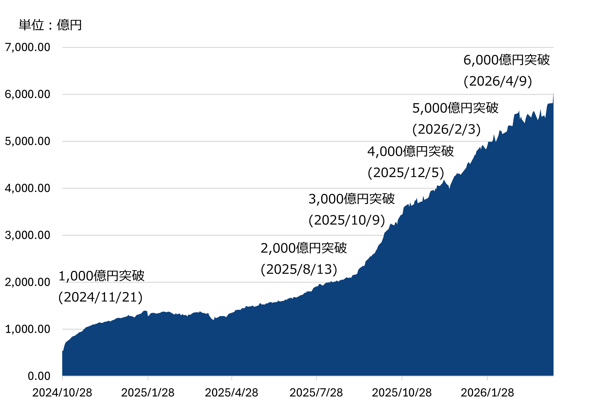 設定来の当ファンドの純資産総額の推移(2024年10月28日から2026年4月9日まで)